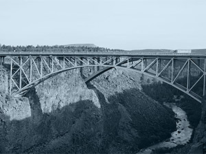 The Crooked River High Bridge is a steel arch bridge that spans the Crooked River gorge in Jefferson County, Oregon. The bridge was designed by Conde McCullough and was completed in 1926 - with a total length of 141 metres, main span of 100 metres, and is the deck is 90 metres above the canyon floor.